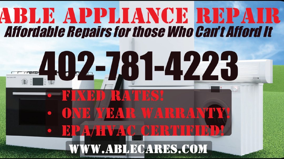 Hi I'm Paul, owner and operator of Able Appliance Repair. My company is dedicated to exceeding the needs of my customers via exceptional personal care, comprehensive technical skills, free technical support, truly affordable flat rates, and a one year labor warranty in writing on the invoice. Discover why, even without paid advertising, across social platforms so many rate Able Appliance Repair in the highest category and why those who do schedule become my most valued form of advertising.. Word of mouth referrals. Thank you for stopping in. Don't hesitate to reach out with any tech related questions as I am always happy to help. I am looking forward to serving Omaha and surrounding areas for many more years to come! Take care- Paul